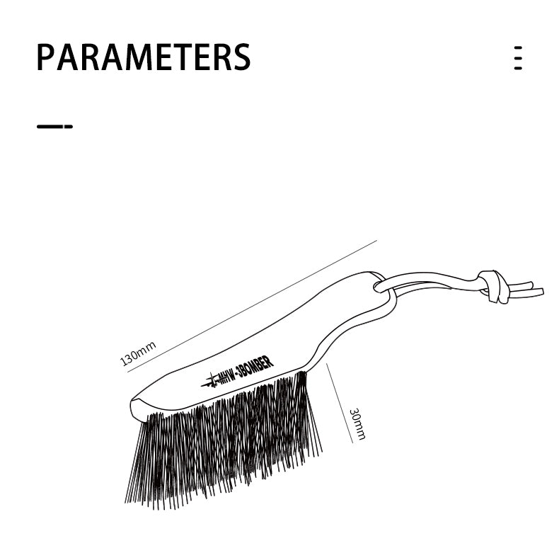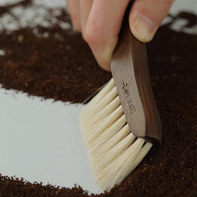 The Knife shape Brush from MHW-3BOMBER has a wooden handle and leather strap for comfort and is made of horsehair that is a perfect softness for cleaning grinds off a bar, counter or equipment.