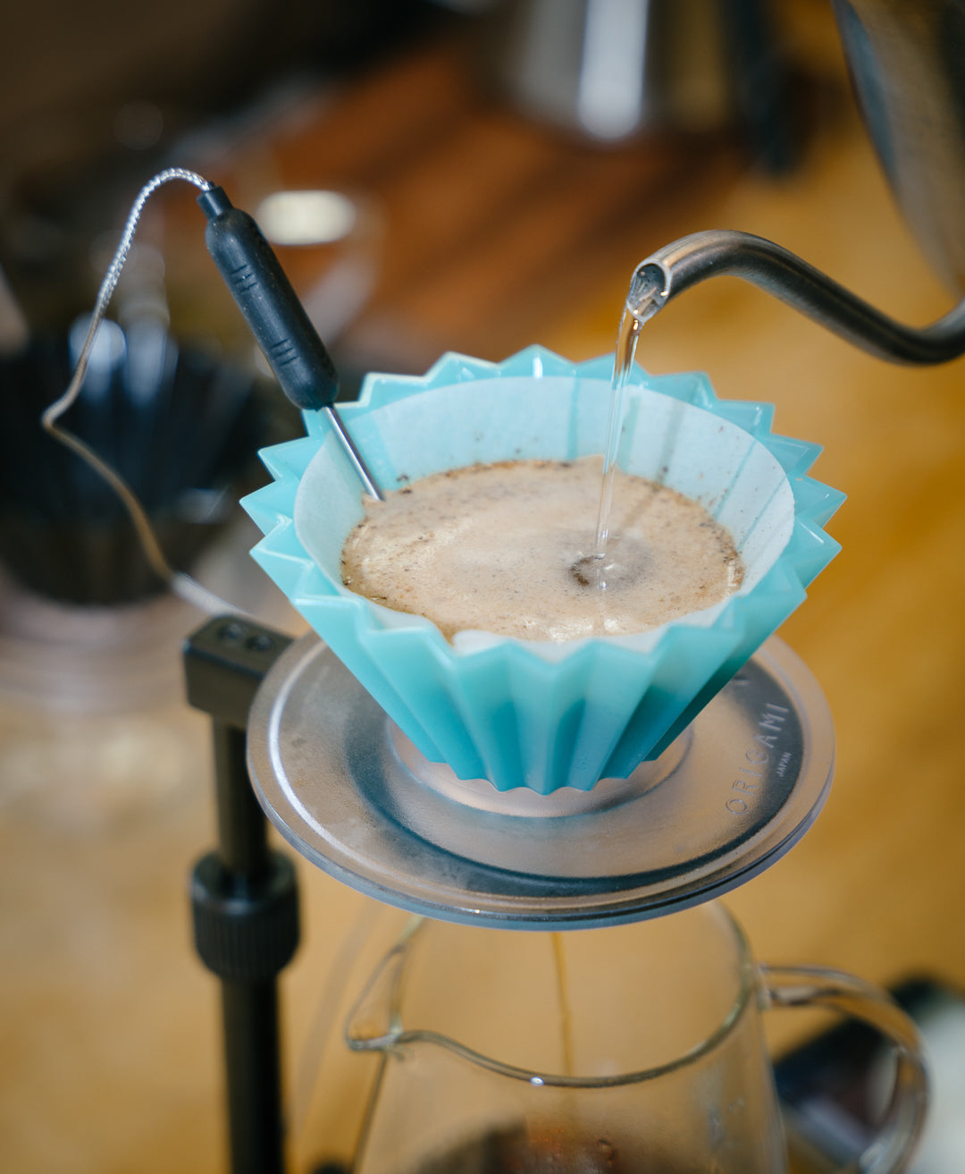 - Optional thermometer can be added to measure the real-time temperature change of coffee grinder in the dripper